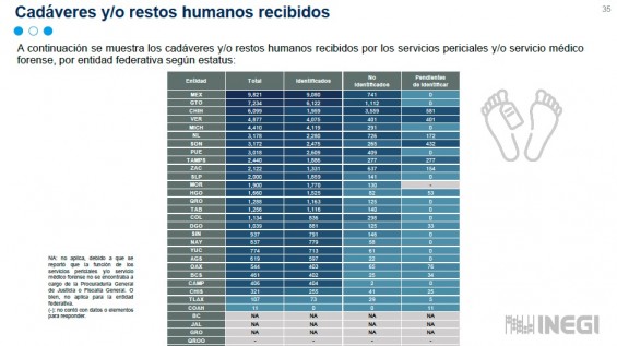 En tanto, Veracruz fue la entidad que presentó la mayor cantidad de unidades de servicios periciales y/o servicio médico forense con 34 y nueve anfiteatros.