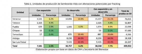 En México al menos 18,953 hectáreas de cultivos parte del programa sembrando vida se encuentran a menos de cinco kilómetros de pozos que están siendo explorados con fracking en cuatro estados del país.